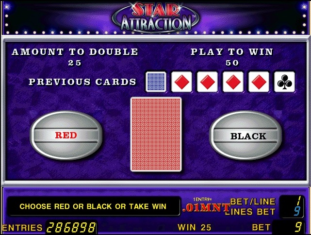 Its Lights, Camera and. Action with Star Attraction ! This thrilling 9-line, 5-reel video game rolls out Hollywoods famous red carpet for you. Enter the world of movies glitter and glamour to win your own chance at fortune and fame. Rrrrroll it! DUDE and DIVA substitute for all symbols except PROJECTOR. 3, 4 or 5 scattered PROJECTORS trigger 12 free games. Free games can be won again during the feature and are played at current bet.