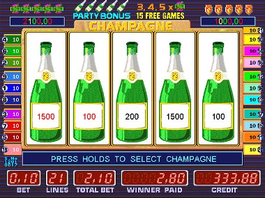 Lovers of exotic and luxury is dedicated to this popular game avtomatyChampagne Party (Champagne) after the official release, the popularity of the machine quickly gained momentum and a list of online gambling fans and admirers have added a new unit. Glamorous design, easy gameplay of the popular brand Mega Jack, rich sound - the distinctive features of the machine with a bonus game. Play online slot machines Champagne Party not difficult. The game interface is represented by 21 active lines and 5 reels. Minimum rate - a loan, the maximum rate calculated for 10 lines or less. The game has several advantages in the form of bonuses and extra features. 3 dollar symbol - it is 15 free games, 5 characters. Champagne allow for bonus game. Additionally, you can double the risk and benefit. And the words of 5 characters "cube" to open the bonus dice.