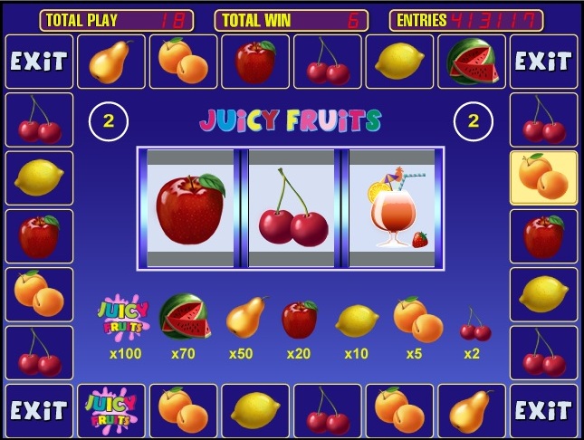 JUICY FRUITS Game is a 5 reel video slot with the opportunity to increase win in the risk game, and get a win in extra bonus game.