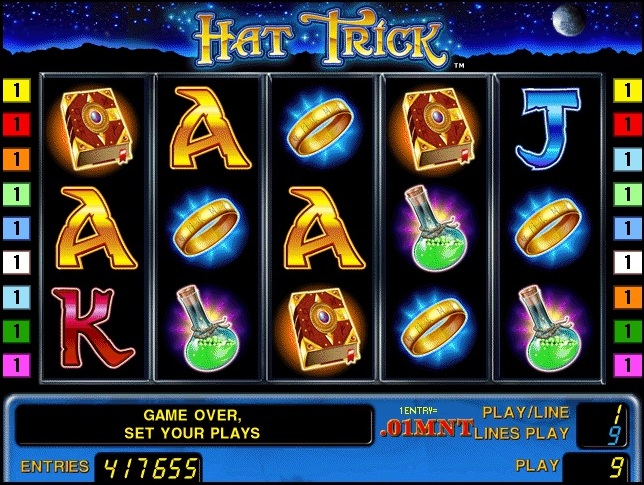 Conjure your winnings! Cast a winning spell with Hat Trick™, the magical new 9-line 5-reel video game. Enter the world of wizardry and summon your fortune. The wizard’s hat is the key to increasing your wins throughout the spellbinding feature. WIZARD substitutes for all symbols except WIZARD HAT. Scattered WIZARD HAT on reels 1, 3 and 5 trigger 10 free games. Both WIZARD and WIZARD HAT substitute for all other symbols during the feature. Free games begin with a win multiplier of x2. Each retrigger during free games increases the win multiplier.